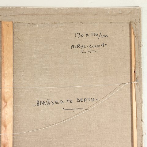 Surrealistisk maleri af Hans Nielsen f. 1923 d. 1998, 'Amused to Death'