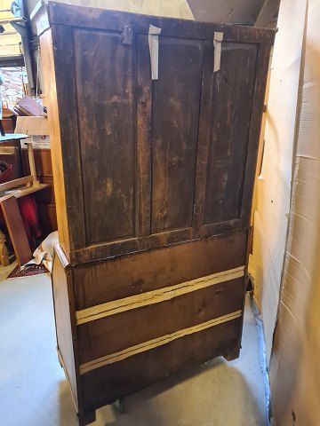 Det har patina og en revne i det ene glas i lågen.