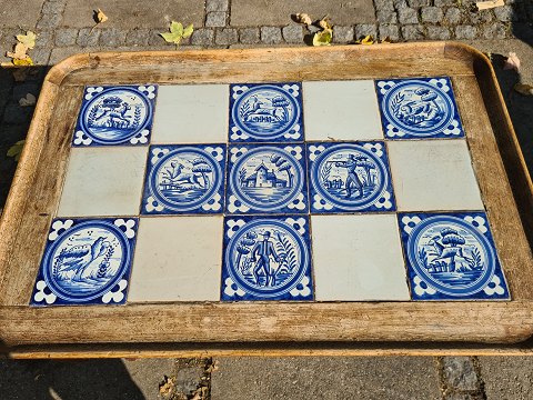 Sofabord fra starten af 1900 tallet I fyr og med jagtmotivs fliser. Fremstår pænt og velholdt uden de store brugsspor.