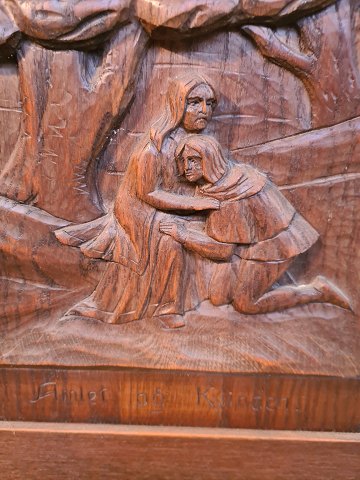Anretterskab i fineret og massivt egetræ med motiver af Hamlet, fra 1930erne.