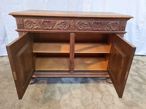 Anretterskab i fineret og massivt egetræ med motiver af Hamlet, fra 1930erne.