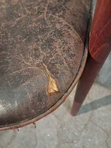 Armstol i massivt teaktræ og læder, fra 1960erne.