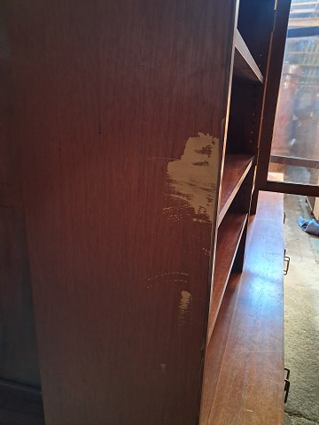 Stor 2-delt reolsektion i fineret mahogni, fra 1950erne.