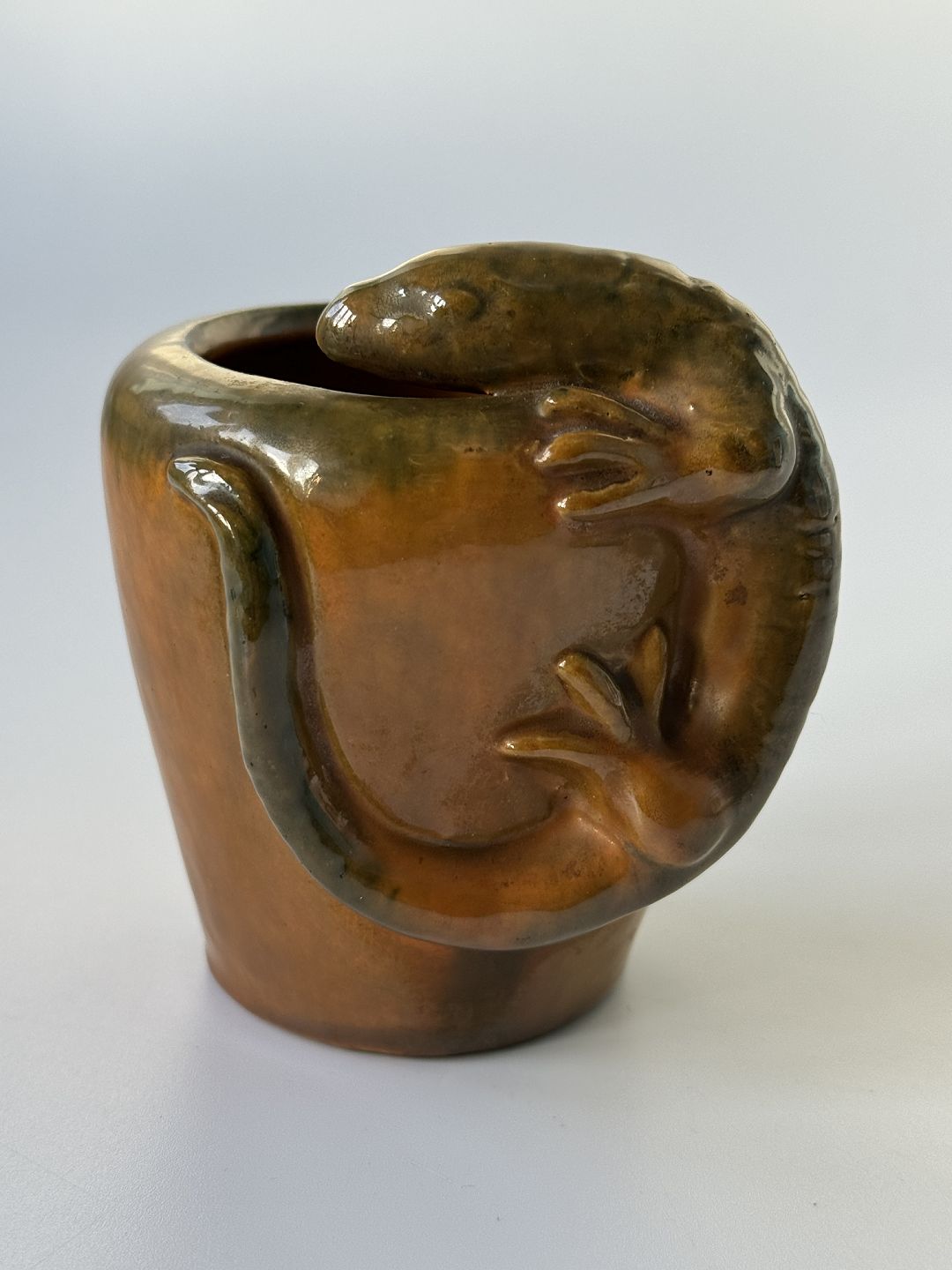 Miniature Art Nouveau vase with climbing lizards, 10 cm high.