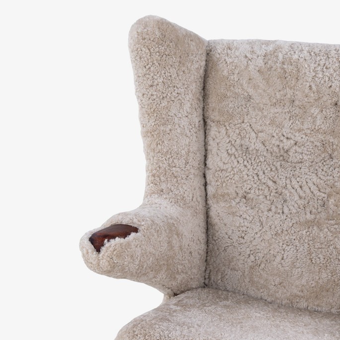 AP 19 - Nybetrukket Bamsestol i lammeskind (farve: Moonlight) m. skammel.