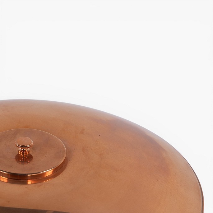 PH 3½-2½ - Bordlampe med overskærm i kobber/hvidt opalglas (begge skærme medfølger) og mellem- samt underskærm i hvidt opalglas. Jubilæumsudgave. Original kasse medfølger med certifikat.