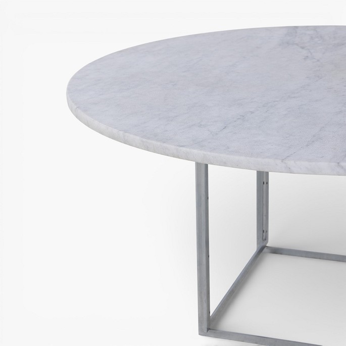PK 54 - Rundt spisebord med lys flintrullet marmor-plade på stel af matforkromet stål. Formgivet i 1963.