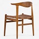 JH 505 - 'Kohornstol' i patineret egetræ med sæde i originalt flet. Formgivet i 1952.