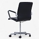 'Oxford'-kontorstol i stål med ryg, sæde og armlæn i sort læder. Mærket fra producent.