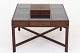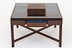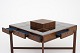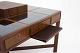 Smykkedisk i wengé udført i otte skuffesektioner m. glasoverflader og blåt bomuldsunderlag, der er derudover to udtræksplader m. brun læderbelægning. Disken er lavet til Georg Jensen i starten af 1980'erne.