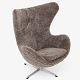 AJ 3316 - Nybetrukket 'Ægget'-lænestol med skammel i lammeskind med (Sahara 07, Curly 17mm) med helstøbt aluminiumsfod.