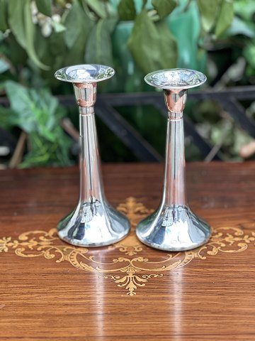 Flot par minimalistiske lysestager i massivt 830 sølv stemplet Hejl , Fredericia . Dansk design ca. 1960-1970