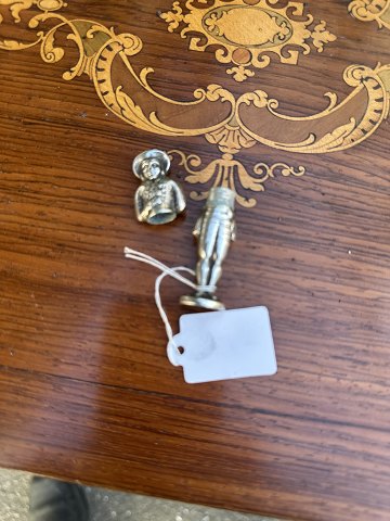 Vintage nålebeholder i sølv , formen en lille figur ( mand i folkedragt , fra 1800 tallet H 5 cm B 1,30 cm