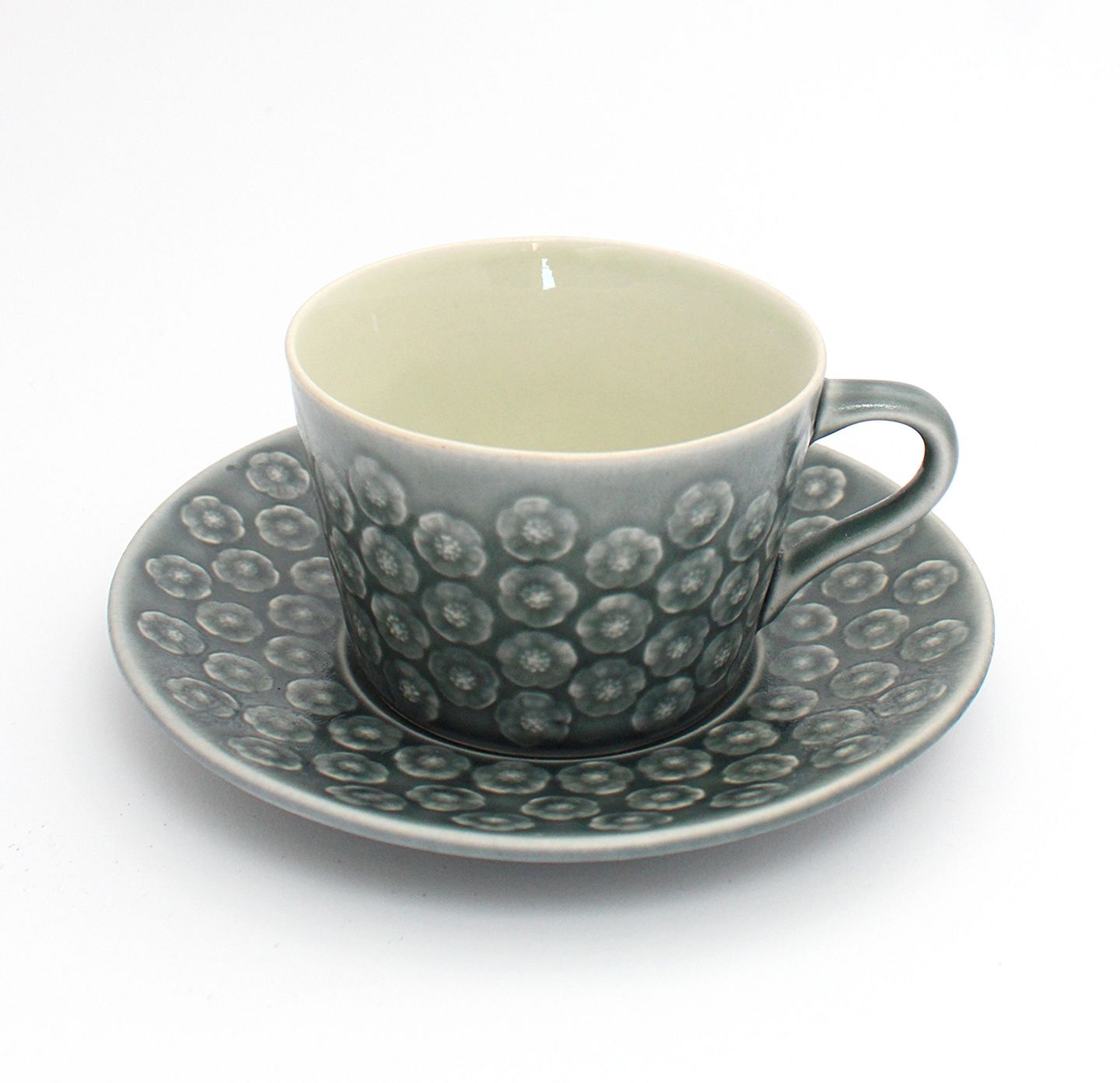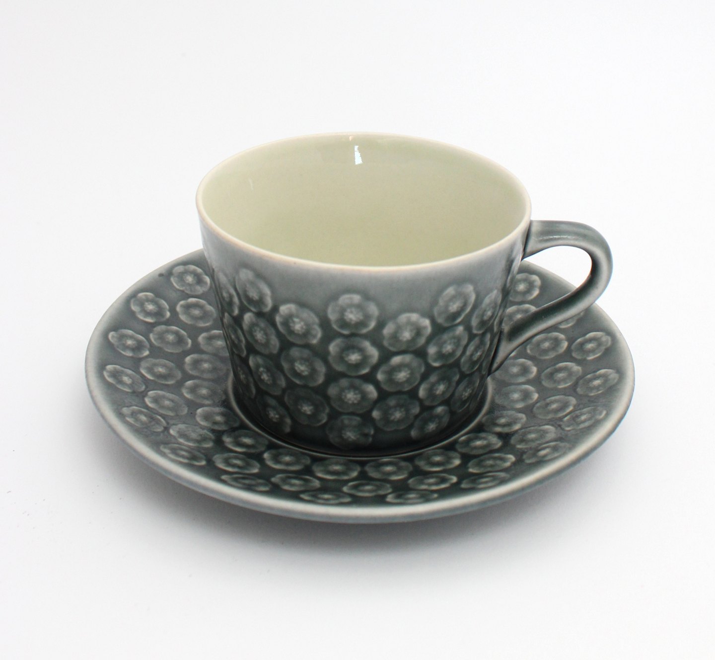 Tekop med underkop. Højde 6 cm. Diameter 8,5 cm. Underkop 15 cm. Flot stand, mint condition. Ingen krakeleringer. Pris: 475 kr. stk. Lager: 6