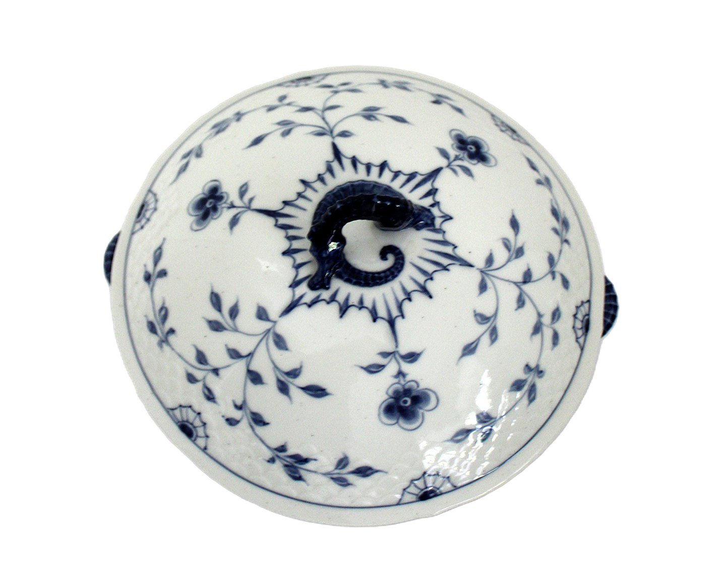Bing & Grøndahl, Sommerfugl, Lågfad, terrin. Kartoffelskål med låg. Gratinskål med låg. Produceret i perioden 1902-1914. Med den tids småprikker i glasuren. I. sortering. Fin stand.