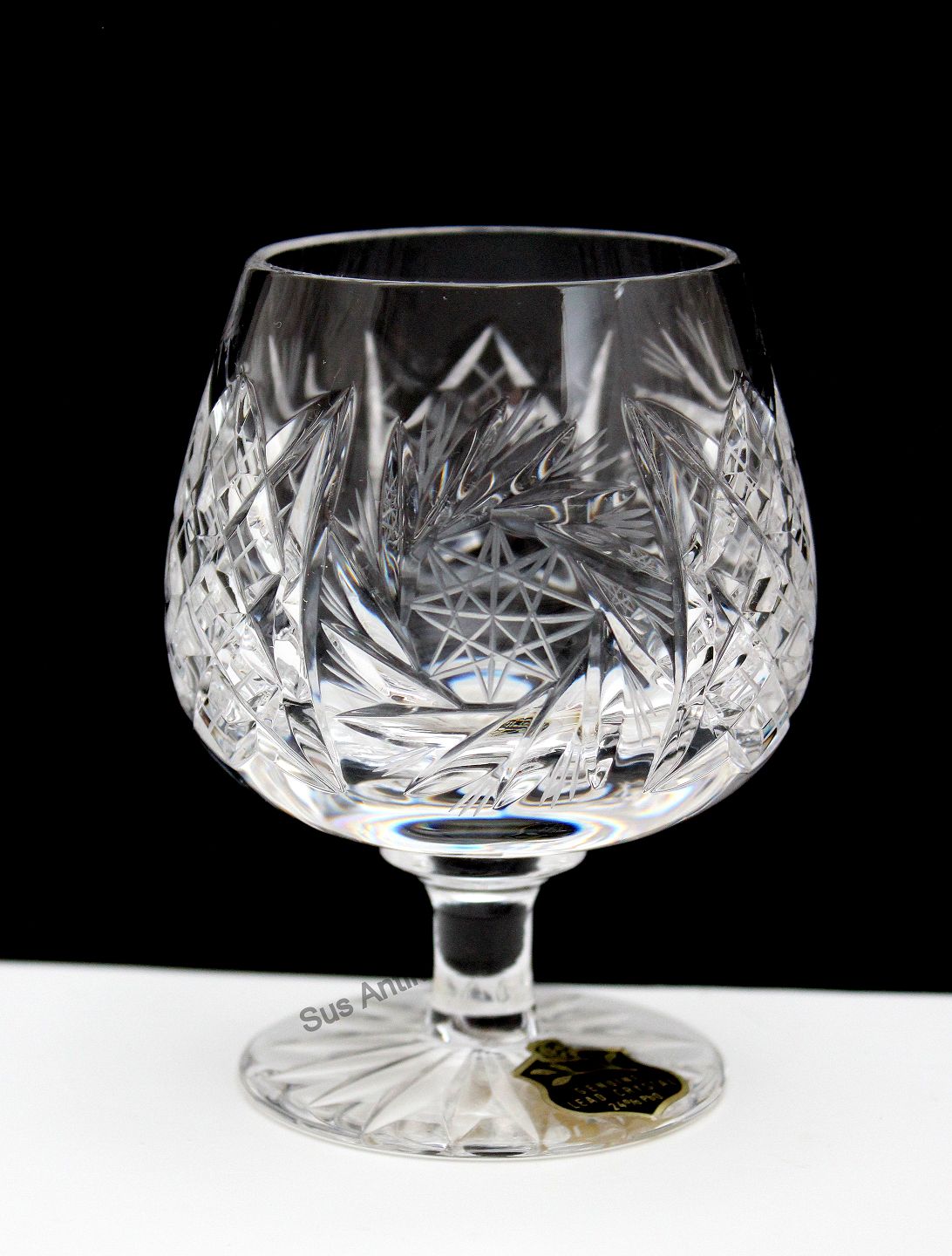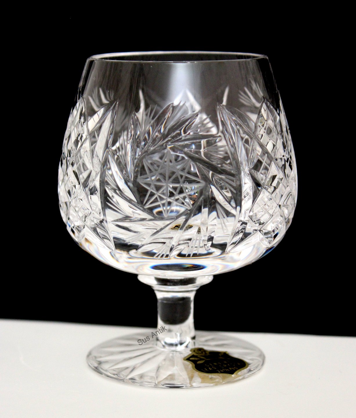 Lyngby glasværk, Granada, Cognac. Mundblæst og håndslebet 24 % Bøhmisk blykrystal med slibninger på kumme, slebet stilk og stjerneslebet fod. Importeret fra Tjekkiet i 1970'erne og solgt via Lyngby glasværk.