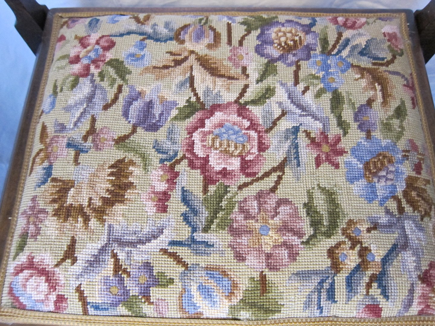Stool / Music stool with a very beautiful and well kept embroidery on the seat