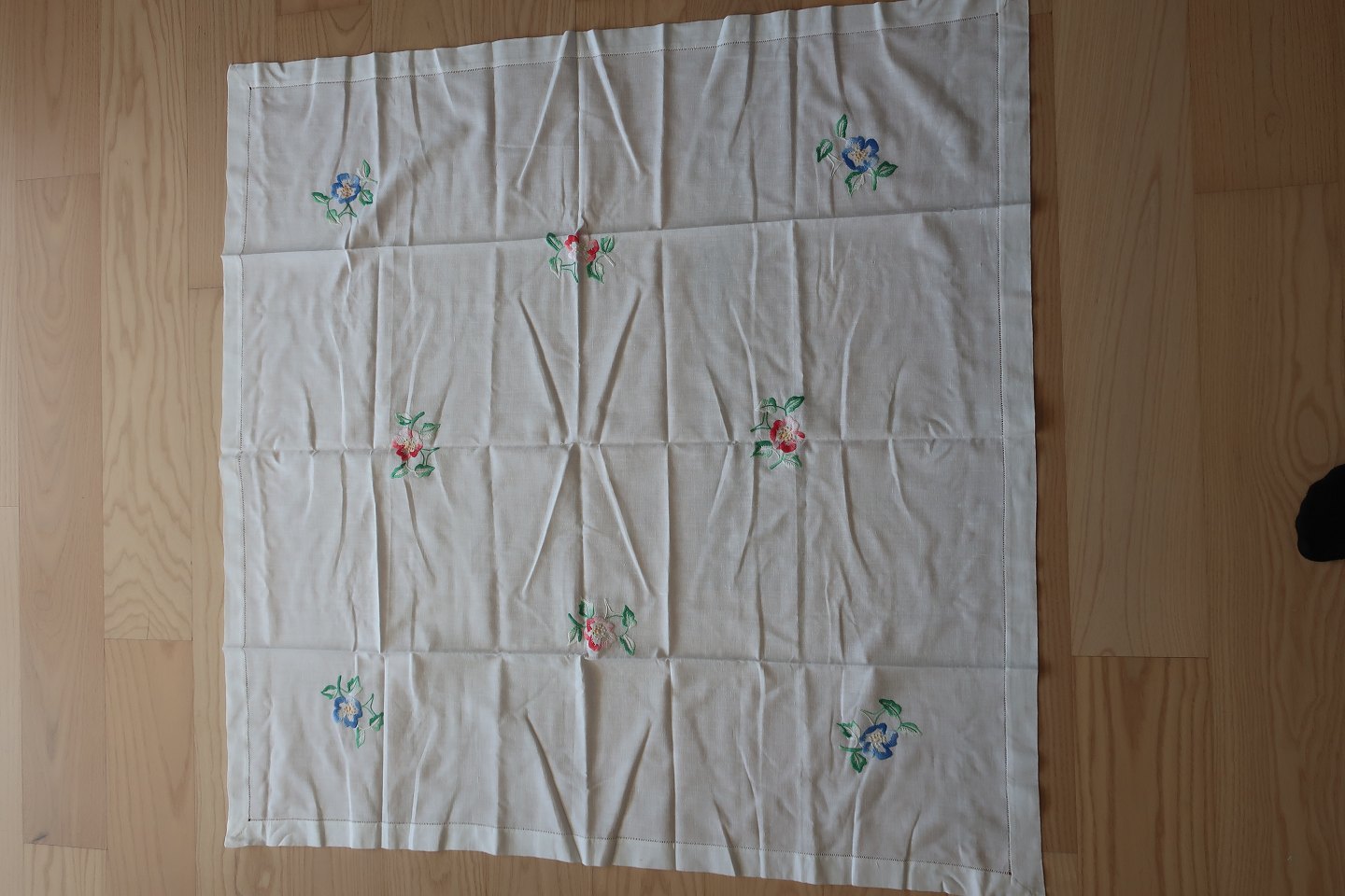 Gammel dug Håndbroderet med farvet broderi Ca. 100cm x 99cm God stand Varenr.: DG108-4-612191