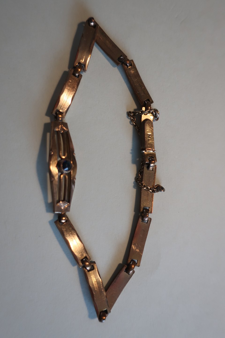 Utraditionelt og smukt gammelt armbånd med et led med blå sten