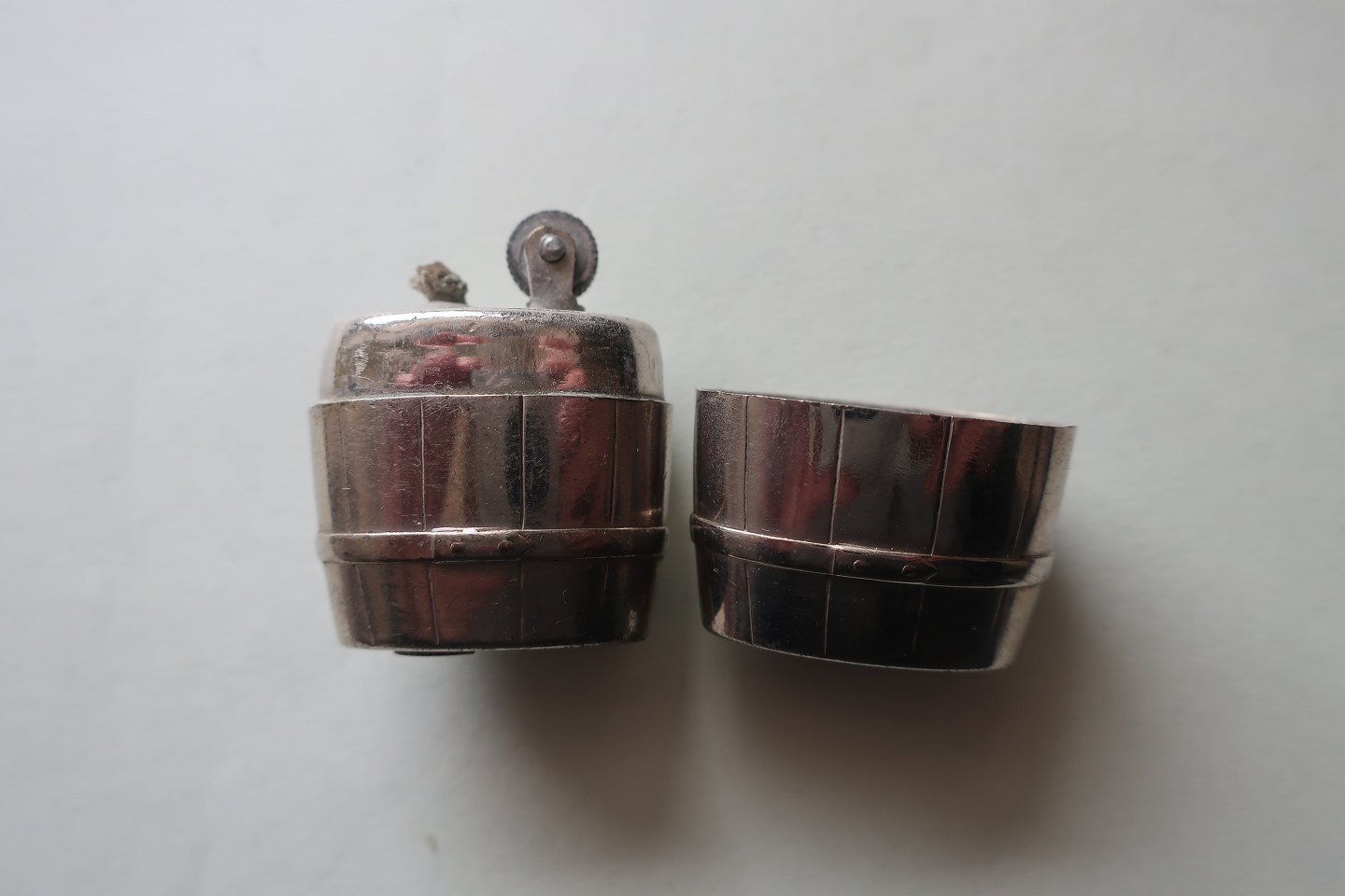 For the collector: Vintage lighter Has a form like a barrel Rare H: 4cm In a good condition Articleno.: KL1005