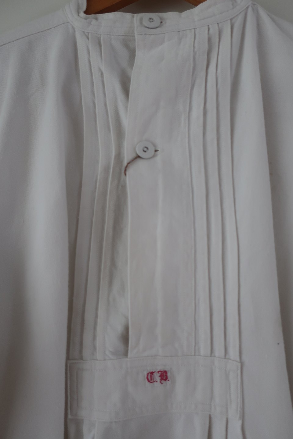 An antique shift with hand made buttonholes, embroidered hand-made initials and other items to make the dress beautiful