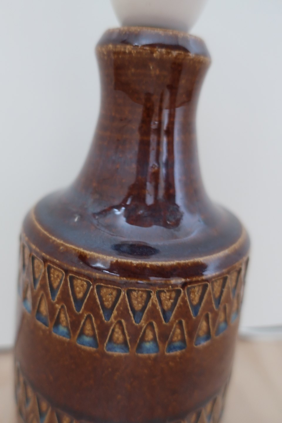 Bordlampe Søholm bordlampe af keramik Model: 3034 Med de smukke Søholm-farver brun og blå Stemplet: Søholm stentøj, Bornholm, Denmark, 3034, Handmade H: 27,5cm m. fatning H. 21cm uden fatning Flot stand Varenr.: KM1006