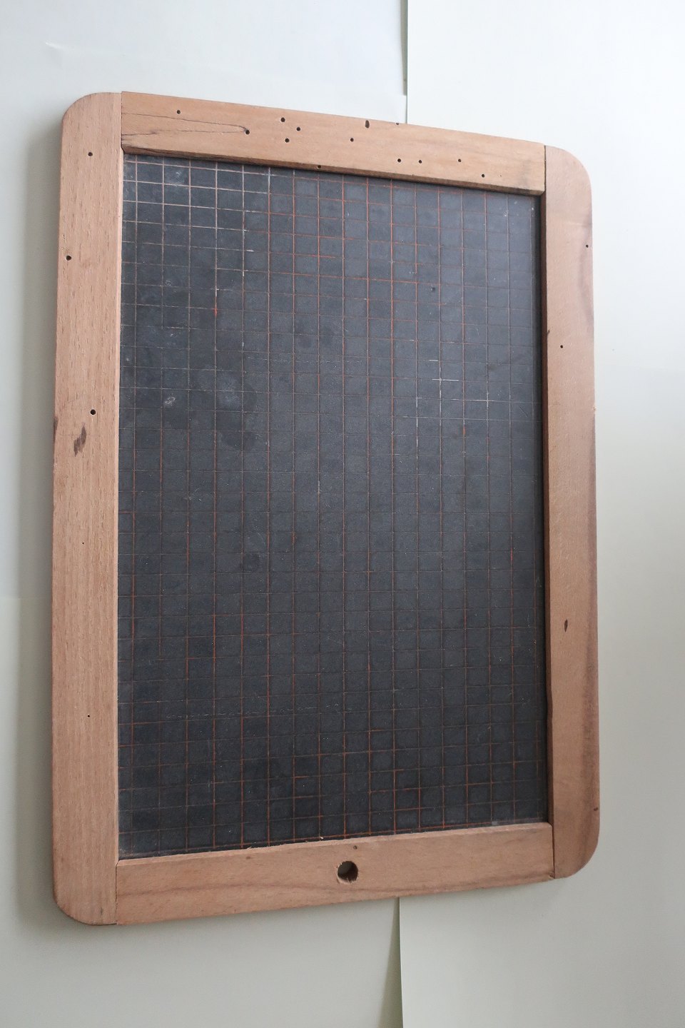 Gammel skole tavle af skifer med ramme af træ Linieret på den ene side og tern på den anden side God stand Varenr.: 3-5243